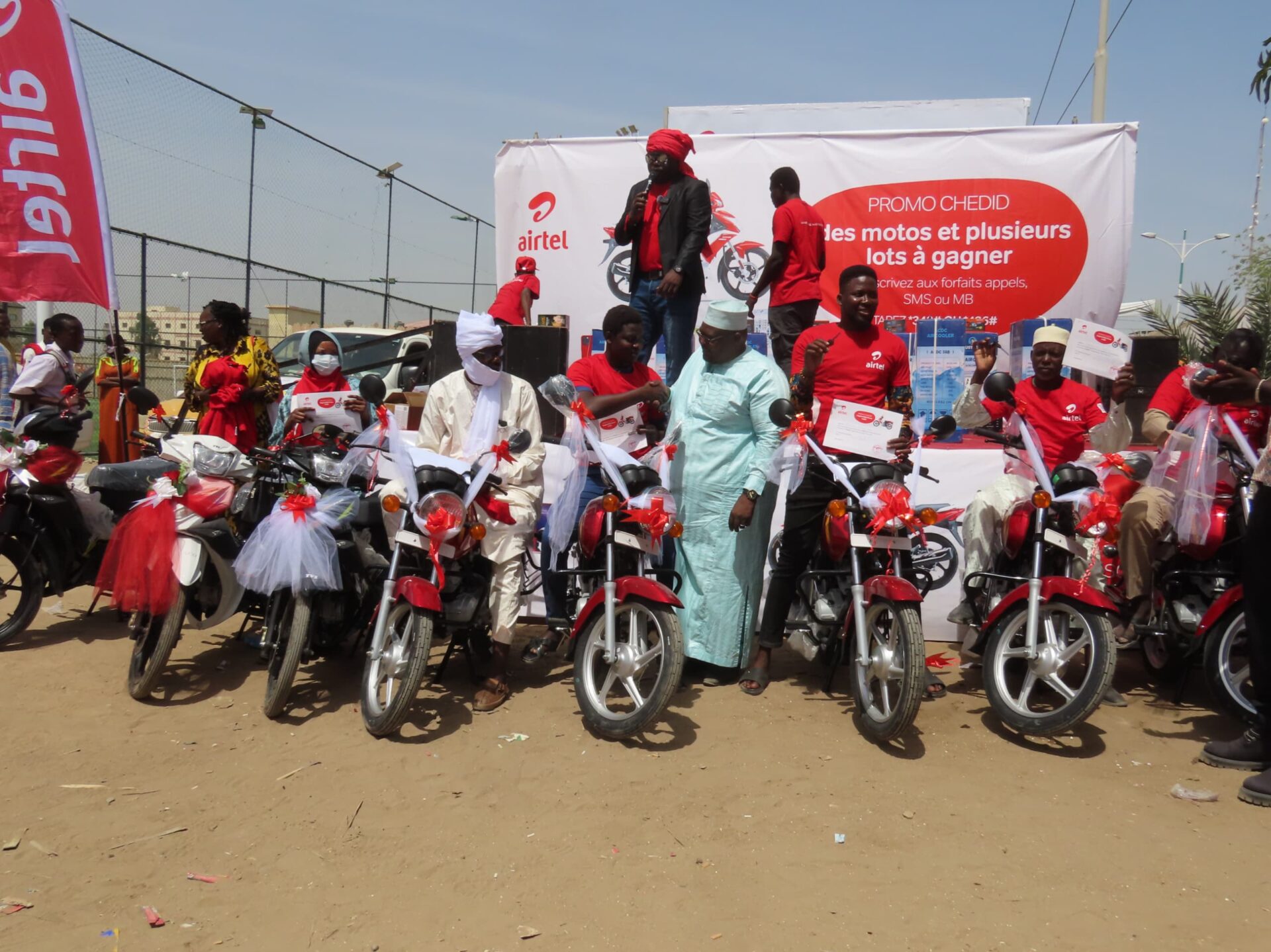 Lors d’une cérémonie tenue à N’Djamena, Airtel Tchad a honoré 274 gagnants de leur promotion Chedid, en offrant des motos, téléphones portables, kits solaires, wifi de poche, smartbox et kits alimentaires. Cet événement s’adresse particulièrement aux fidèles abonnés pendant les périodes du Ramadan et du Carême.