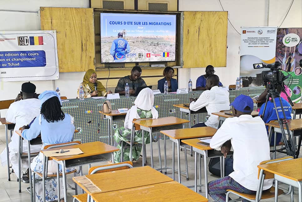 La migration climatique se réfère aux mouvements de population causés par des changements dans l’environnement, tels que la désertification, les inondations ou encore les tempêtes. Chaque année, ces phénomènes forcent des millions de personnes à laisser derrière elles leurs foyers, à la recherche de lieux plus sûrs. Au Tchad, pays à la croisée des chemins migratoires, l’impact est particulièrement palpable. Ce cours d’été, organisé par l’OIM, vise à doter les jeunes de compétences essentielles pour comprendre et gérer ces flux migratoires complexes et croissants.
