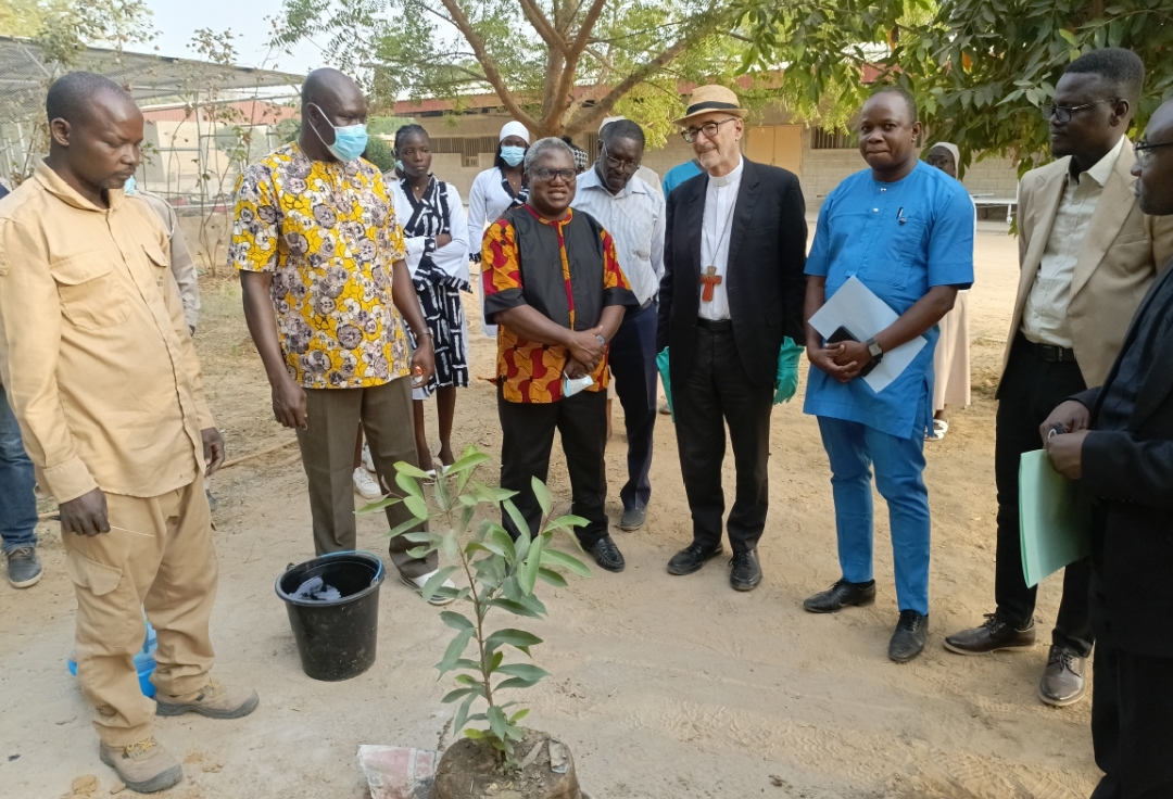 En conclusion de sa visite, Michael Czerny a symboliquement planté un arbre et posé la première pierre du futur data center du Complexe, projet soutenu par le Programme des Nations unies pour le développement (PNUD).
